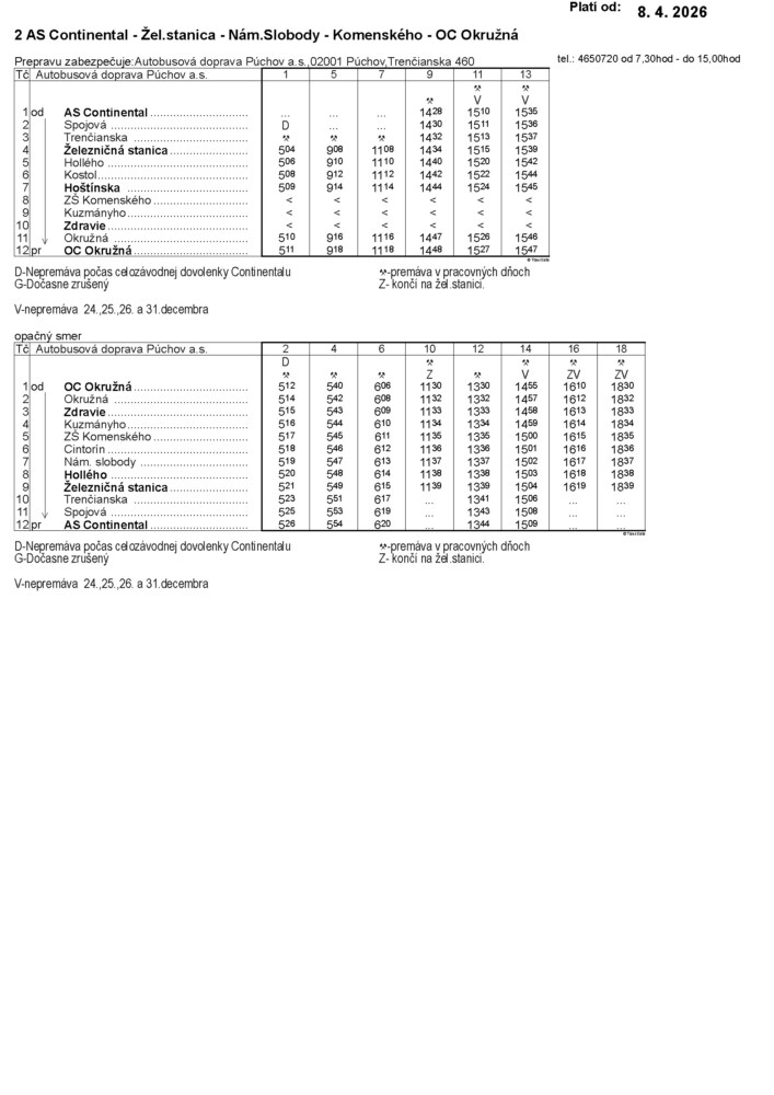 Dočasné zmeny v cestovných poriadkoch Autobusovej dopravy Púchov a.s.