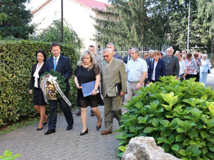 Mesto pri pietnom akte v mestskom parku pri pomníku na pamiatku padlých v 1. a 2. svetovej vojne reprezentoval primátor Rastislav Henek, poslanci Cyril Crkoň, Irena Kováčiková, Ján Riško, Lukáš Ranik a vedúca oddelenia školstva a sociálnych vecí Renáta Holáková. ZO Slovenského zväzu protifašistických bojovníkov viedol jeho predseda Peter Horváth, ktorý sa k zhromaždeným prítomným občanom prihovoril: