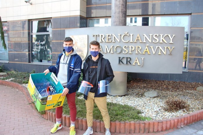 Nadšenci 3D tlače sa v tomto období zmobilizovali do jednej veľkej skupiny, ktorá sa rozhodla pomôcť zdravotníkom na celom Slovensku. Do iniciatívy sa postupne zapájajú aj žiaci stredných škôl, ktorých zriaďovateľom je Trenčiansky samosprávny kraj. V stredu 1. apríla 2020 doniesli žiaci Gymnázia v Púchove a dubnickej priemyslovky na župný úrad prvých 25 kusov, ktoré vyrobili spolu so žiakmi Spojenej školy v Púchove. „Štít je na 3D tlačiarni možné vytlačiť asi za dve a pol hodiny. Ďalších desať minút trvá jeho zmontovanie. Vyrábame ich najmä pre potreby nemocníc, pretože tam ich ľudia najviac potrebujú,“ uviedol gymnazista s tým, že ďalšie kusy sú už vo fáze výroby.
